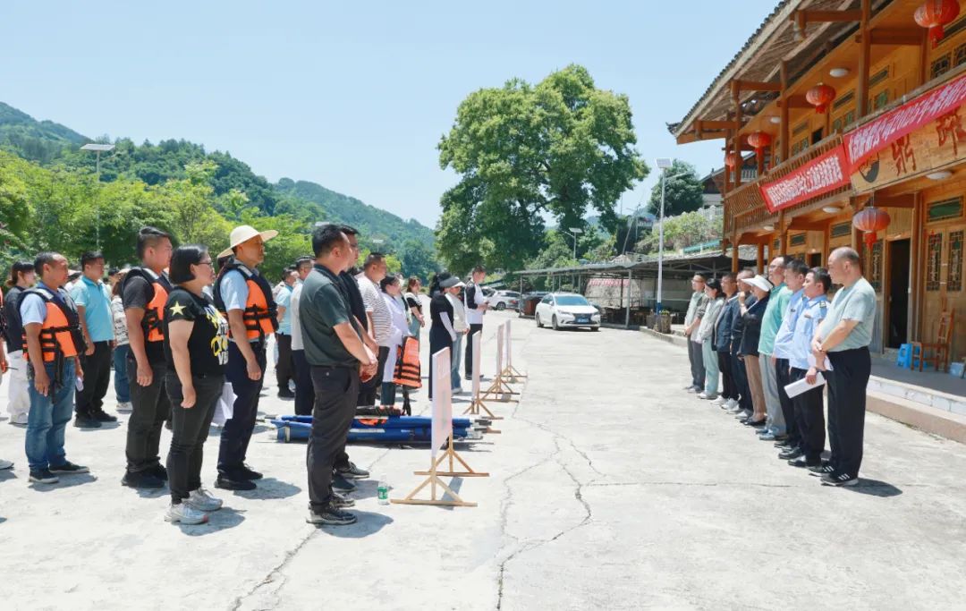 为贯彻落实“安全第一、预防为主、综合治理”的安全生产方针,规范景区水上旅游安全事故灾难的应急管理和应急响应程序,维护救援人员及游客的生命安全和社会稳定,创造安全和谐稳定的旅游环境。5月12日,施秉县世遗局、文体广电旅游局、应急局、交通运输局、水务局、县消防救援大队、施秉县杉木河旅游开发有限公司等多部门在下㵲阳河景区、白沙井景区联合开展2025年景区综合应急演练。副县长周晓颖到现场观摩指导。