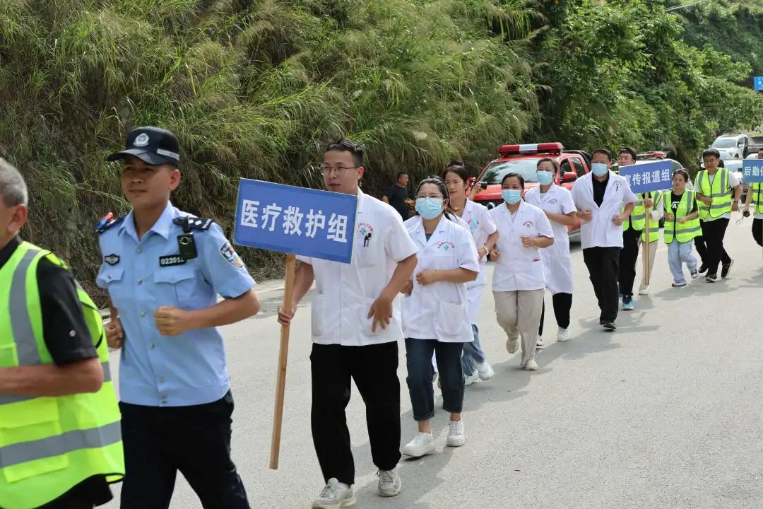 本次演练重点突出“县—乡—村—点”四级联动的高效机制。模拟受强降雨的影响,导致从江县第三民族中学西侧出现滑坡、泥石流迹象,威胁丙梅街道三角井社区30户91人,需紧急转移和安置。监测员迅速上报险情,丙梅街道和县应急指挥部接到监测员报告险情后,立即响应。综合协调组、转移安置组、秩序维护组、医疗救护组等8个工作组按照预案,有条不紊地开展应急抢险救灾工作,最终30户91人全部安全转移。